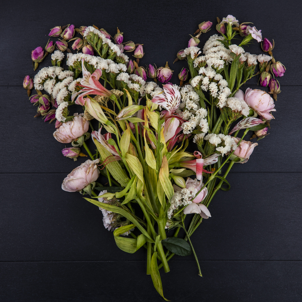 Cuscino di fiori stagionali a forma di cuore